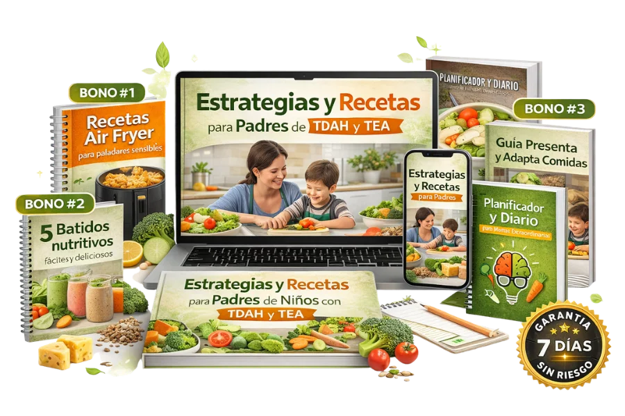 La Guía práctica para padres: comidas saludables para niños con TDAH y TEA es una herramienta clara y accionable para transformar la alimentación sin peleas ni frustración. No es teoría complicada, sino estrategias reales que te ayudan a crear un entorno que favorezca la aceptación de alimentos y reduzca el estrés en cada comida.